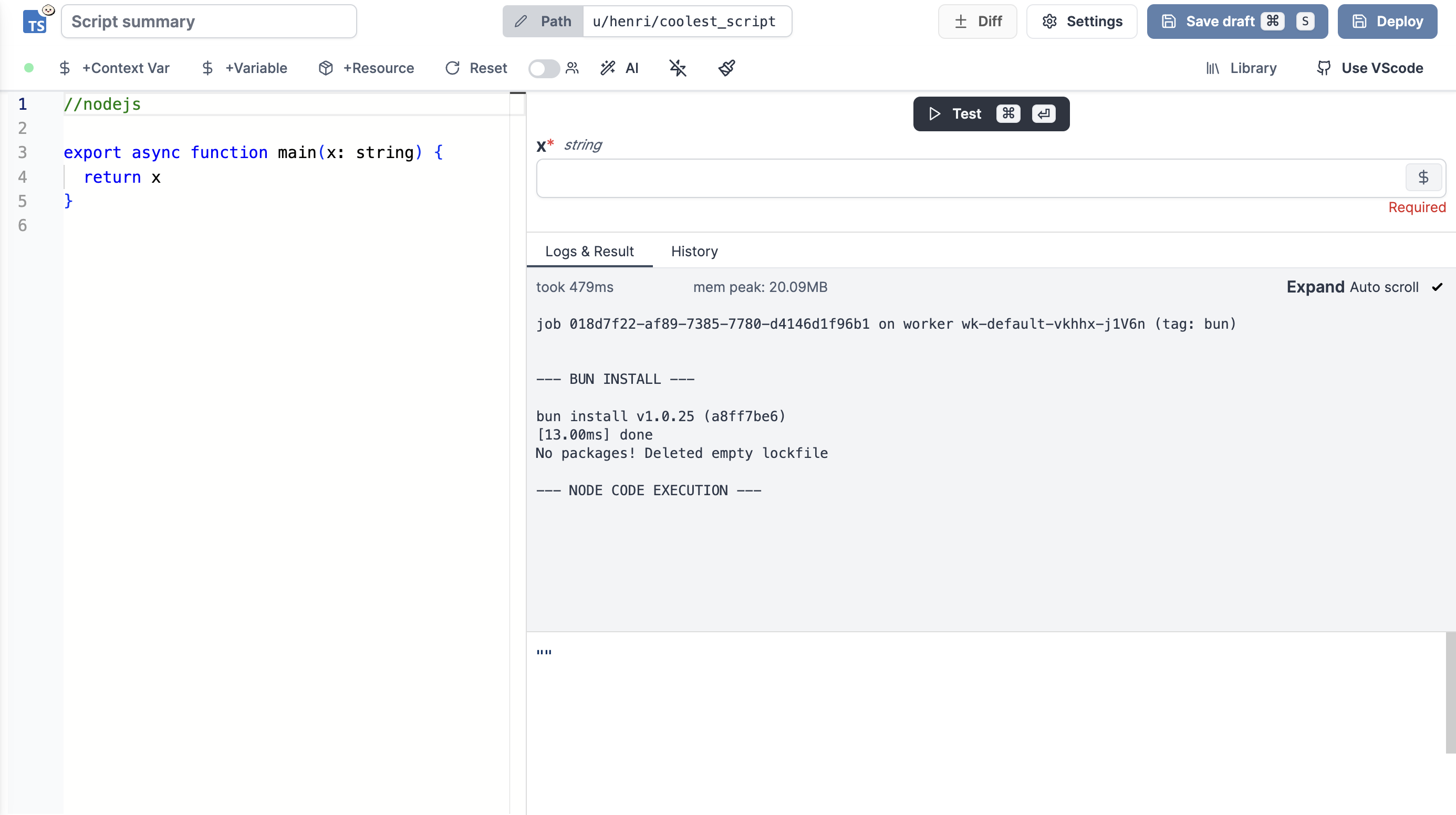 Windmill provides a true NodeJS compatibility mode using Bun. This means that you can run your existing NodeJS code without any modifications. Only comment //nodejs
