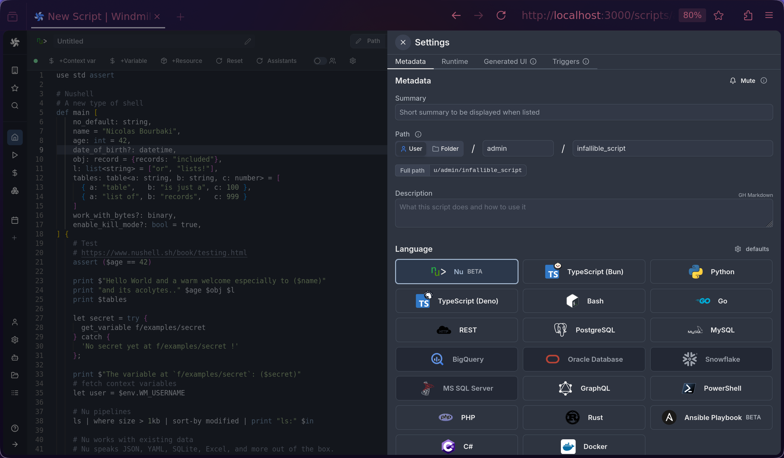 - Write your Windmill script in Ruby.